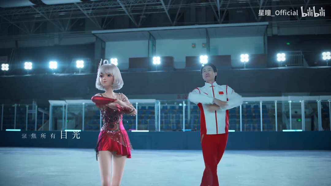 此外,国内的虚拟主播有更多除直播以外的开发联动机会,例如腾讯旗下虚拟主播星瞳能和花滑运动员庞清、佟健共舞,A-SOUL的嘉然可以和艺人金莎同台联动,这是跨国主播社团难以企及的。