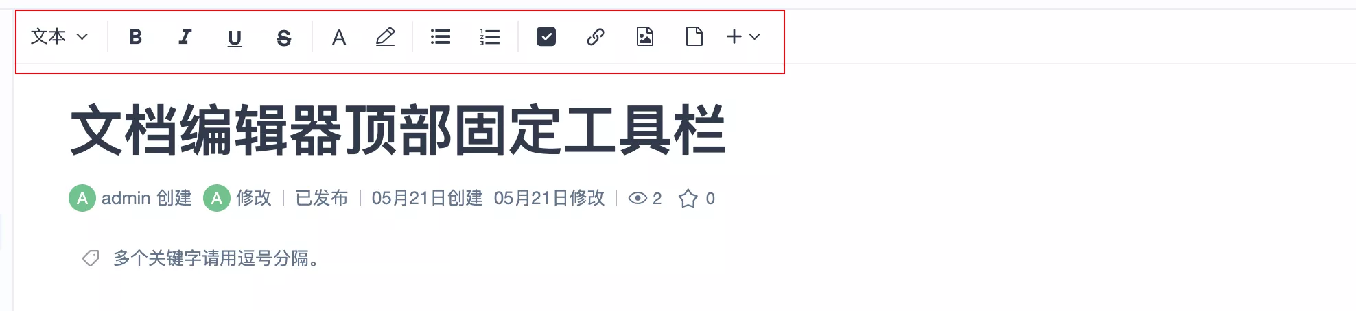 ▼文档编辑器顶部工具栏固定,常用的操作按钮常驻页面顶端,不跟随页面滚动。