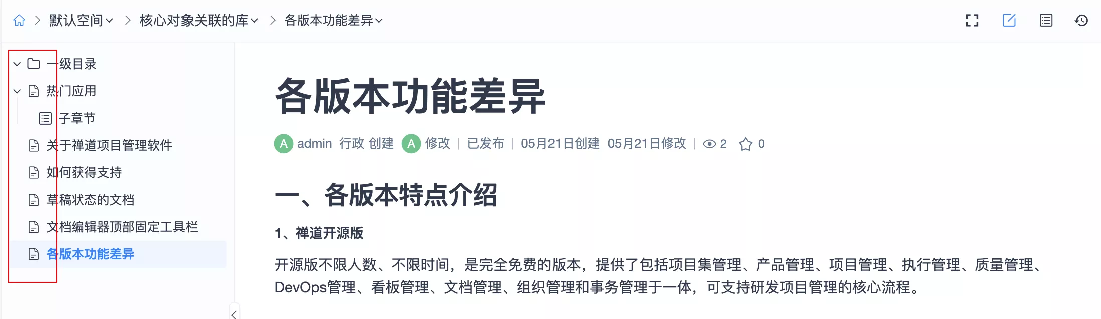 大家好, 禅道开源版21.7.1发布啦! 文档编辑器新增顶部工具栏固定功能,使常用操作按钮在滚动页面时保持常驻显示,提升编辑效率,同时持续优化文档使用过程中的体验。欢迎大家下载升级。